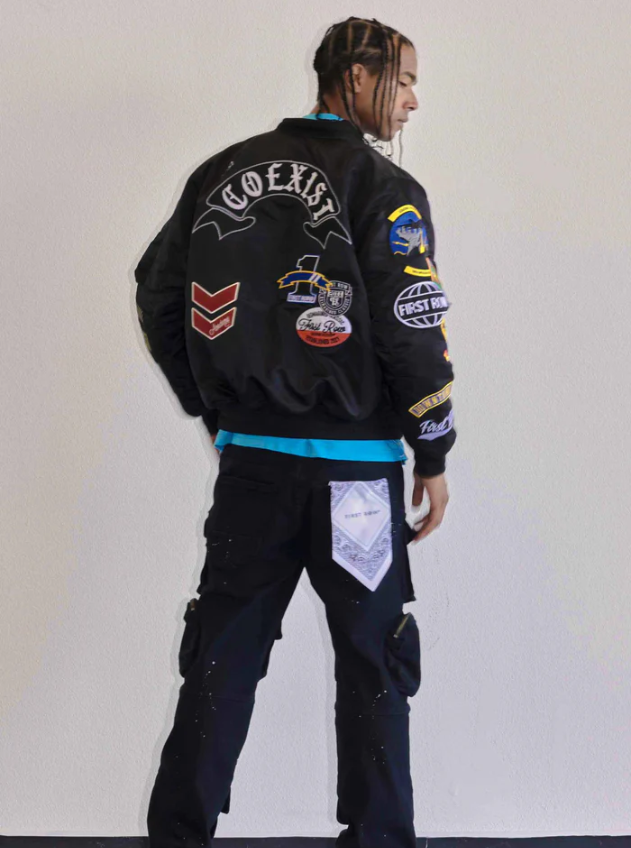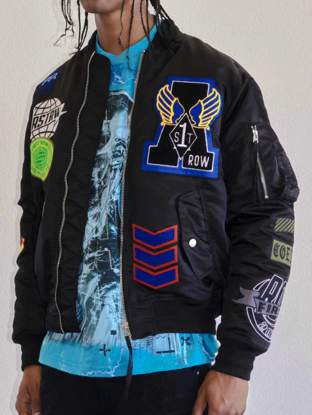 A comfy oversized MA-1 bomber jacket with utility detail. Featuring a rib-knit banding at the cuffs hem for a comfortable fit with warm quilting inside lining and center front zipper closure.