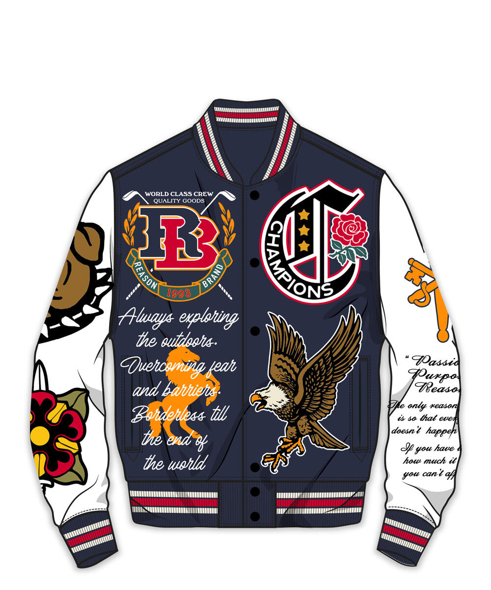 100% POLYESTER WOOL WITH CHENILLE PATCHES, DIRECT EMBROIDERY AND SUBLIMATION PRINT